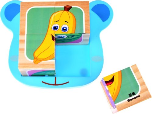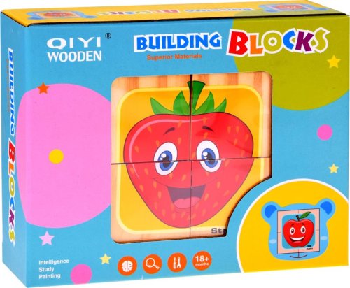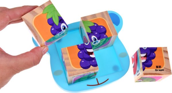 Dřevěné obrázkové kostky poslouží jako nejen jako skládačka, ale také jako první jednoduchá stavebnice zejména pro oblíbenou hru - stavění a bourání komínů. Dětské kostky procvičí u nejmenších dětí představivost i jemnou motoriku prstů. Starší děti při skládání obrázků rozvíjí fantazii, orientaci a logické myšlení, a kostky je motivují k vyprávění příběhů. Sada obsahuje: 6 obrázků - 4 kostky balené v kartonové krabičce plastový stojan Rozměr kostky: 4,5 x 4,5 x 4,5 cm