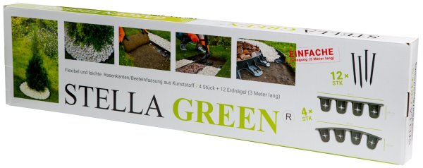 Sada obsahující neviditelný obrubník 80 cm 4 kusy a hřeby 12 ks. Lze použít pro různé podmínky, jako například: trávník, dlažba, betonový chodník, štěrk, drť, kůra. Vynikající ochrana proti roztroušení dekorativních kamínků v zahradních cestičkách. Ideální na oddělení trávníku od estetických květinových záhonů, dlažby, betonových ploch apod.