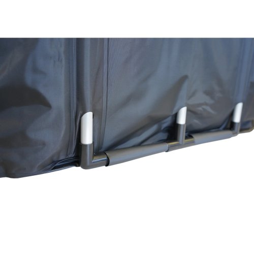 Konstrukce kádě využívá pět vrstev materiálů, které zajišťují pevnost, dlouhou životnost a dobrou tepelnou izolaci. Dvě vrstvy PVC chrání termoizolační výplň z česané bavlny před vlhkostí, zatímco voděodolný plášť zabraňuje prosakování vody. Vnější vrstva z polyesteru a nylonu navíc chrání káď před mechanickým poškozením.