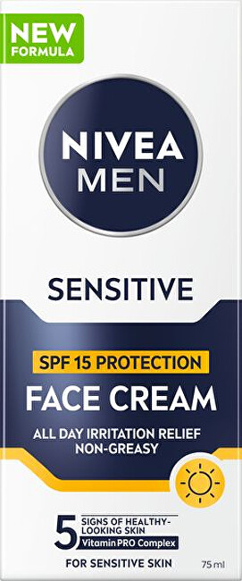 Ochranný pleťový krém pro muže Sensitive s OF 15 je navržen speciálně pro citlivou mužskou pleť. Pleti poskytuje nejen hydrataci, ale také ochranu proti UV záření s faktorem 15. Složení krému zanechává pleť jemnou a chráněnou před vnějšími vlivy. Jeho lehká textura se snadno vstřebává a nezpůsobuje podráždění.