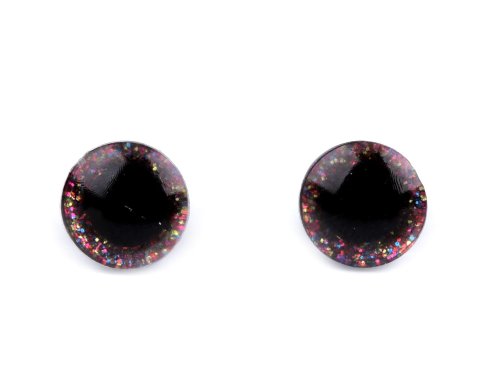 Polokulaté oči s glitrovou duhovkou se krásně třpytí. Umocní výraz vašich nejrůznějších postaviček či zvířátek. Mají závit, na který se nasadí duhovka, následně se provleče materiálem, a z druhé strany se pak nacvakne pojistka, která oči bezpečně připevní na místo. Pokud nebudete chtít, aby se oči třpytily, nemusíte duhovku použít, v tom případě zůstane duhovka transparentní. 1 sada = 1 oko + 1 třpytivá duhovka + 1 pojistka Délka vrutu je 1 cm. Na zacvaknutí pojistky je nutné vynaložit větší sílu.