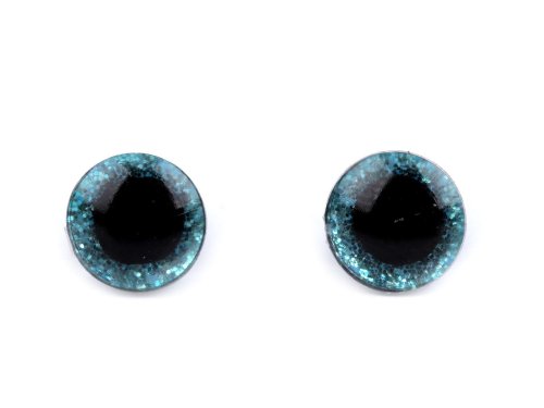 Polokulaté oči s glitrovou duhovkou se krásně třpytí. Umocní výraz vašich nejrůznějších postaviček či zvířátek. Mají závit, na který se nasadí duhovka, následně se provleče materiálem, a z druhé strany se pak nacvakne pojistka, která oči bezpečně připevní na místo. Pokud nebudete chtít, aby se oči třpytily, nemusíte duhovku použít, v tom případě zůstane duhovka transparentní. 1 sada = 1 oko + 1 třpytivá duhovka + 1 pojistka Délka vrutu je 1 cm. Na zacvaknutí pojistky je nutné vynaložit větší sílu.