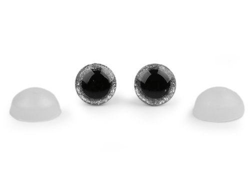 Polokulaté oči s glitrovou duhovkou se nádherně třpytí. Umocní výraz vašich nejrůznějších postaviček či zvířátek. Mají závit, na který se nasadí duhovka, následně se provleče materiálem, a z druhé strany se pak nacvakne pojistka, která oči bezpečně připevní na místo. Pokud nebudete chtít, aby se oči třpytily, nemusíte duhovku použít, v tom případě zůstane duhovka transparentní. 1 sada = 1 oko + 1 třpytivá duhovka + 1 pojistka Délka vrutu je 9 mm. Na zacvaknutí pojistky je nutné vynaložit větší sílu.