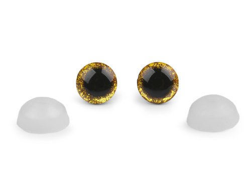 Oči glitrové s pojistkou Ø12 mm - zlatá (10 sada)