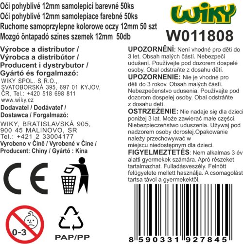 Oči pohyblivé které jsou určeny k dekorování. velikost 12 mm obsah balení 50 ks