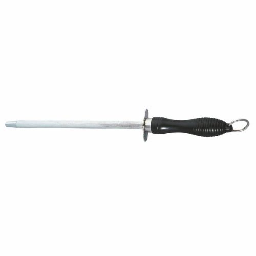 Nerezová ocílka o délce 18, 8 cm, rukojeť z tvrdého, odolného černého plastu, slouží k broušení nožů v domácnosti, vhodná do myčky na nádobí. Materiál - nerez, plast. Rozměry - 29 x 1 cm.