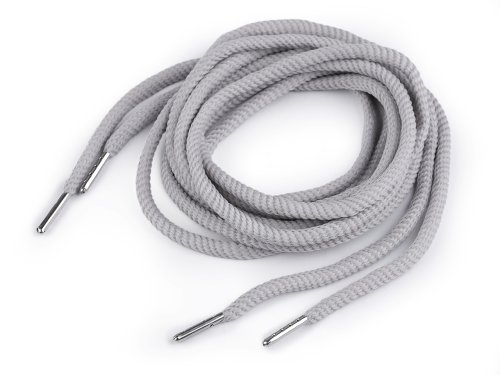 Kulatá oděvní šňůrka vám usnadní práci, protože je již opatřena [kovovými ]koncovkami. Použití: Kulatá šňůrka je vhodná do tunýlků bund, mikin, tepláků a jiných oděvů. Struktura povrchu je u obou variant odlišná. Bílá šňůrka má úplet, který působí jako kroucený, černá šňůrka má klasický jemný úplet, viz. foto.