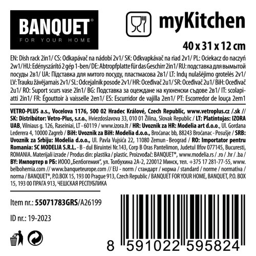 Odkapaváč na nádobí myKITCHEN slouží k odkládání umytého nádobí. Odkapávač je členěný na sekce příbory, talíře a ostatní nádobí.
