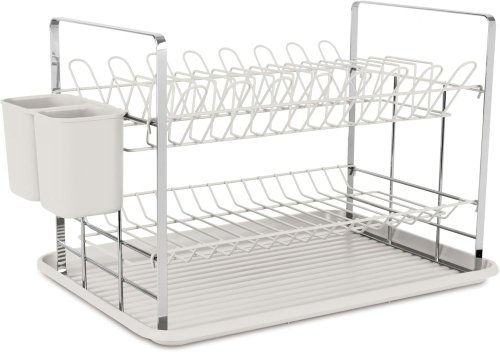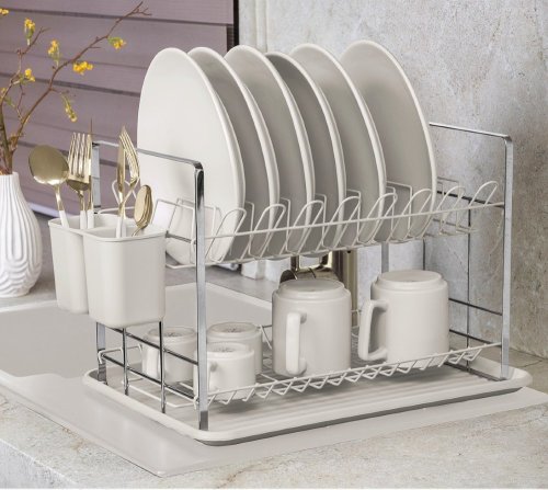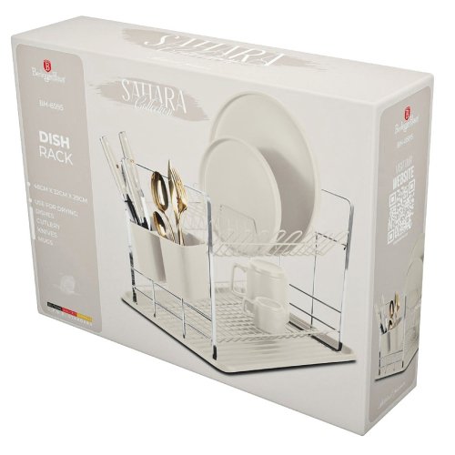Dvoupatrový odkapávač na nádobí z kolekce Sahara od BerlingerHaus. Odnímatelný odkapávací tác. Dvě patra pro nádobí či skleničky a dva zásobníky na příbory a náčiní. Jednoduchá údržba a čištění. Designový kousek vyrobený v kombinaci plastu a kovu. Rozměry 48 x 32 x 29 cm