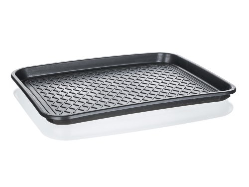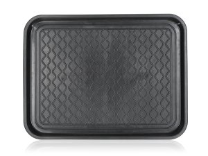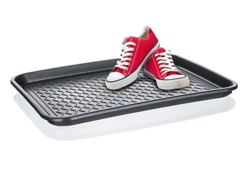 Plastový odkapávač na boty, v černé barvě, je vyrobený z recyklovatelného plastu. Odkapávač je vhodný pomocník v zimním období pro záchyt vody a nečistot z obuvi. Lze použít i v kufru auta.