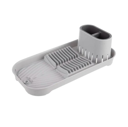 Praktický odkapávač s odnímatelnou přihrádkou na příbory a vyhrazenou plochou pro talíře je ideálním pomocníkem do každé kuchyně. Díky svému úzkému provedení je perfektní volbou i do menších kuchyní, na chaty, do apartmánů, do karavanů nebo všude tam, kde je potřeba šetřit místem. Jeho promyšlený design zajišťuje efektivní odvádění vody díky důmyslnému systému drážek v části základny, která je vybavena výpustí se zátkou. Díky tomuto řešení odkapávač nevyžaduje samostatný podnos, protože voda je odváděna přímo mimo něj. Stabilitu na kuchyňské lince zajišťují silikonové protiskluzové prvky na spodní straně, které brání nechtěnému pohybu během používání. Tento odkapávač tak spojuje funkčnost, hygienu a praktičnost v elegantním provedení. Materiál plast PP + TPE protiskluzy. Rozměry 39 x 19.5 x 11 cm. Není vhodný do myčky. EAN 8592381258641