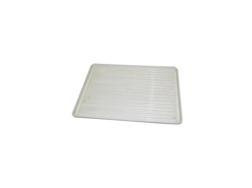 Tradiční odkapávač nádobí s žebrovaným dnem, bílá barva.
