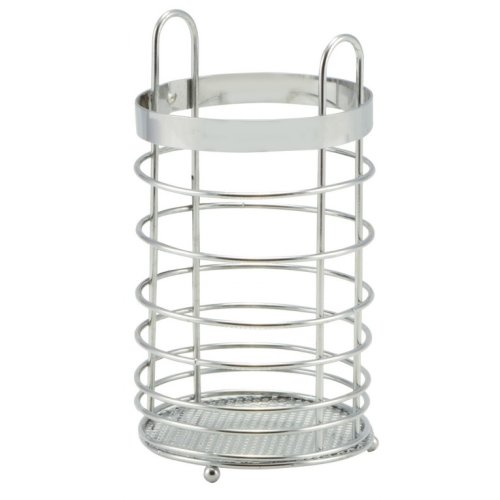 Kovový chromovaný kulatý odkapávač na příbory, vařečky a jiné. Průměr 11 cm a výška 20 cm. Není vhodné do myčky nádobí. EAN 5999558577179