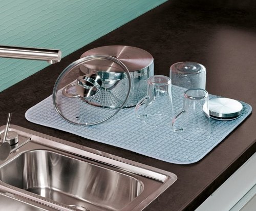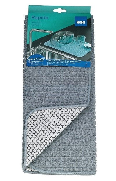 Praktická odkapávací podložka pod nádobí je velmi užitečným kuchyňským pomocníkem. Používá se místo klasického odkapávače, nádobí se po umytí rozloží na podložku a nechá oschnout. Je lehká, skladná, měkká a skvěle zachycuje vodu. Odkapávací podložka je vyrobena z rychleschnoucího materiálu, můžete ji také vyprat v pračce. Jistě oceníte, že lze kdykoliv složit a znovu rozložit, výrazně tím ušetříte prostor na kuchyňské lince i při skladování. Ideální také pro menší prostory, kde není místo na pevně stojící odkapávač. Zároveň ji lze použít jako podložku pod pevný odkapávač, který nemá spodní tác na odtékající vodu.- podložka na odkapávání umytého nádobí od německé značky KELA- rychleschnoucí a skvrnám odolný materiál- měkká a šetrná k nádobí- šetří místo v kuchyni i při skladování- kdykoliv připravená k použití- vhodná k praní v pračce na 40°- barva: světle šedá- rozměry: 50 x 39 cm- značka: KELA