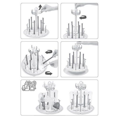 Praktický stojánek na odkapání vody z umytých kojeneckých lahví.
