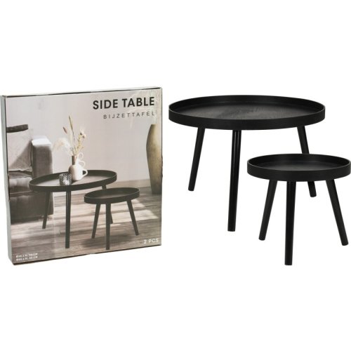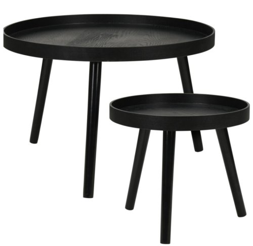 Stylová sada dvou kulatých přídavných stolků. Ideální pro moderní interiéry. Stoly mají nohy z borového dřeva potažené PV fólií a desky vyrobené z MDF s jasanovou dýhou, což zajišťuje dlouhou životnost a estetický vzhled.