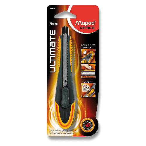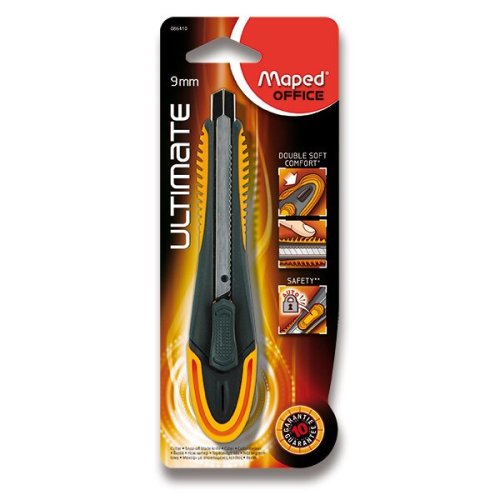 Odlamovací nůž Maped Ultimate se speciálně upraveným úchopem pro pohodlné držení jak v místě dlaně, tak v místě položení ukazováčku. Zatahovatelné odlamovací břity o šíři 9 mm, integrovaná pojistka. Záruka 10 let.