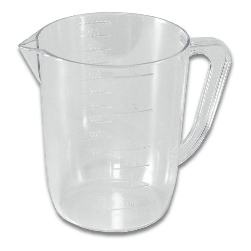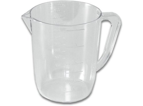Objem měření 1 litr, výška odměrky 14 cm a průměr 11.5 cm. Na odměrce je vytlačena stupnice na tekutiny. Český výrobce. EAN 8590474908800