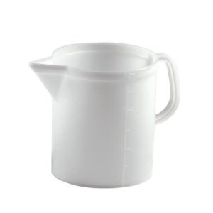 Plastová odměrka s uchem, výlevkou a stupnicí pro odměření tekutin.