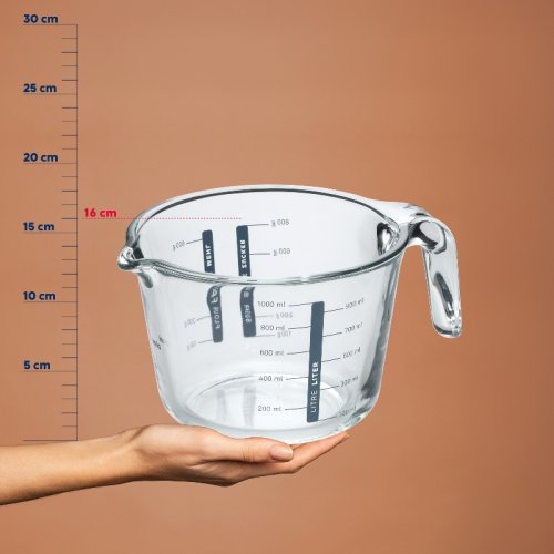 praktické využití: perfektní na odměřování vody, mléka, mouky i dalších přísad při vaření a pečení.