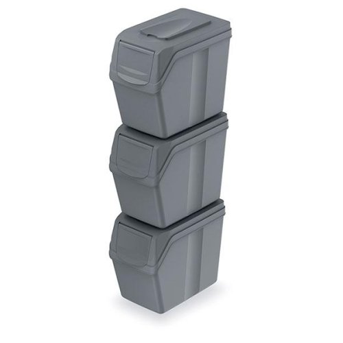 Sada 3 odpadkových košů Prosperplast Sortibox skvěle poslouží při třídění odpadu u vás doma i v kanceláři. Individuálně je rozmístíte podle aktuální potřeby. Koše jsou vyrobené z odolného plastu, který prodlužuje jejich životnost. Objem každého z nich činí 20 l. Různě barevné samolepky pomáhají rozpoznat, co do kterého koše patří.