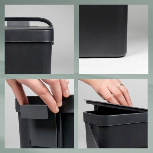 Praktické madlo na přenášení umožňuje snadnou přepravu koše, zatímco odnímatelné víko zajišťuje, že nepříjemné pachy zůstanou pryč. Odpadkový koš je malý, ale výkonný - ideální pro každodenní použití a ideální pro udržení pořádku i v malých kuchyních.