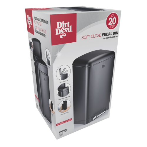 Zdá se vám, že váš odpad je každý den plný? S tímto 20litrovým pedálovým košem od Dirt Devil již tento problém nebudete mít! Tento černý nerezový koš nabízí nejen řešení pro váš odpad, ale také vypadá moderně a elegantně. Umístěte jej do kuchyně, koupelny nebo kanceláře, abyste měli pořádek. Díky mechanismu soft-close nádoby se víko při otevírání nezavře a pachy se tak rychle nešíří po místnosti. Díky vyjímatelnému vnitřnímu kbelíku se nádoba snadno vyprazdňuje. Tu lze z nádoby vyjmout během několika sekund a stejně snadno ji po vyprázdnění znovu vložit. Díky nožnímu pedálu ve spodní části pedálového koše se nemusíte dotýkat víka, abyste jej otevřeli.