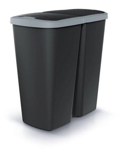 Odpadkový koš Prosperplast COMPACTA Q DUO se skládá z jedné velké vnitřní nádoby. Přesto vám usnadní třídění odpadu u vás doma i v kanceláři. Je totiž vybavený dvojitým víkem s tlačítkovým otevíráním, na které můžete uchytit jeden nebo rovnou dva odpadkové pytle. Do jednoho z nich vyhazujete například smíšený odpad, do druhého plast nebo třeba papír.