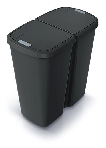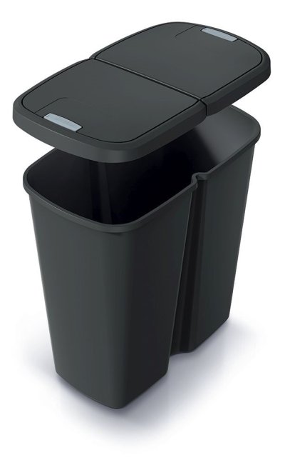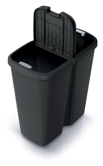 Odpadkový koš Prosperplast COMPACTA Q DUO se skládá z jedné velké vnitřní nádoby. Přesto vám usnadní třídění odpadu u vás doma i v kanceláři. Je totiž vybavený dvojitým víkem s tlačítkovým otevíráním, na které můžete uchytit jeden nebo rovnou dva odpadkové pytle. Do jednoho z nich vyhazujete například smíšený odpad, do druhého plast nebo třeba papír.