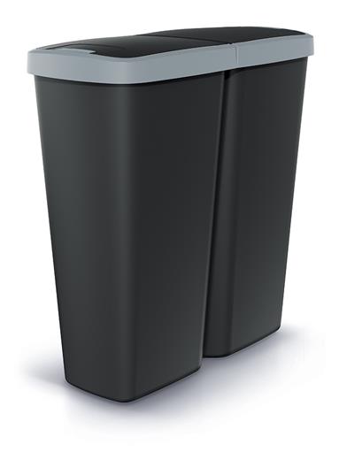 Odpadkový koš Prosperplast COMPACTA Q DUO se skládá z jedné velké vnitřní nádoby. Přesto vám usnadní třídění odpadu u vás doma i v kanceláři. Je totiž vybavený dvojitým víkem s tlačítkovým otevíráním, na které můžete uchytit jeden nebo rovnou dva odpadkové pytle. Do jednoho z nich vyhazujete například smíšený odpad, do druhého plast nebo třeba papír.
