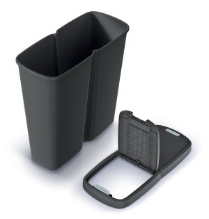 Odpadkový koš Prosperplast COMPACTA Q DUO se skládá z jedné velké vnitřní nádoby. Přesto vám usnadní třídění odpadu u vás doma i v kanceláři. Je totiž vybavený dvojitým víkem s tlačítkovým otevíráním, na které můžete uchytit jeden nebo rovnou dva odpadkové pytle. Do jednoho z nich vyhazujete například smíšený odpad, do druhého plast nebo třeba papír.