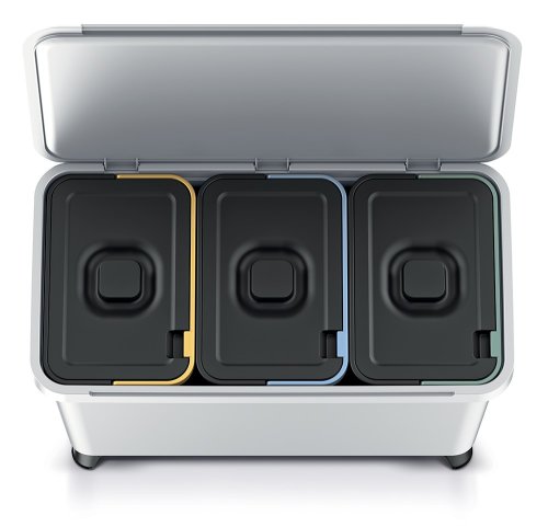Šetřete naši planetu. Odpadkový koš Prosperplast SYSTEMA vám usnadní třídění odpadu. Obsahuje totiž 3 nádoby s odlišným barevným označením – žlutá na plast, modrá na papír a zelená na sklo. Záleží ovšem na vás, jestli se barev budete držet. Každá nádoba má objem 10 litrů, takže poskytuje dostatečný prostor pro veškeré odpadky. Jakmile jakýkoliv koš naplníte, snadno jeho obsah vynesete do popelnice s pomocí plastového ucha pro lepší držení. Součástí balení jsou 2 držáky, které je možné přišroubovat ke zdi. Koš na ně zavěsíte.