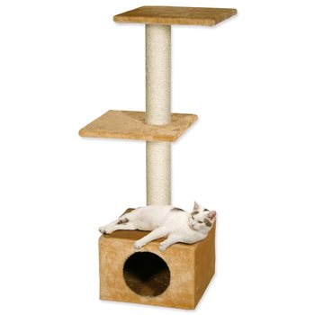 Sestava složená z odpočívadel, boudičky a sloupků omotaných sisalovým provazem vhodným na škrábání.