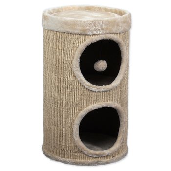 Odpočívadlo s plyšovým potahem ve tvaru sudu s hračkou.