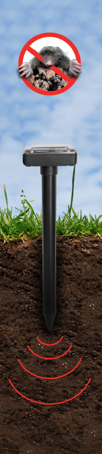 Odpuzovač hlodavců CTRL-MO101S účinně odpuzuje krtky, myši, hraboše a zmije, odpuzovač vydává vibrace a zvuky.