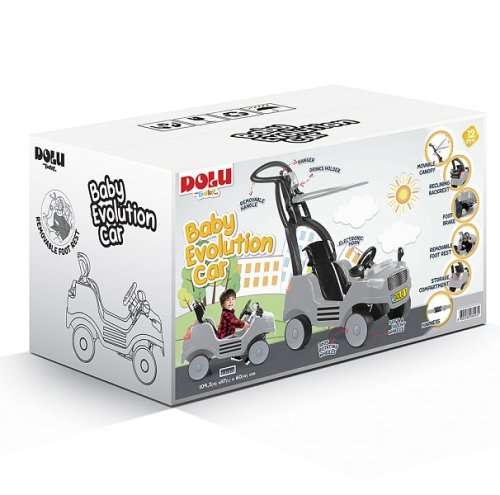 Baby Evolution Car – revoluční a všestranné odrážedlo navržené tak, aby vaše dítě doprovázelo různými fázemi vývoje. Toto multifunkční auto, pečlivě vyrobené společností Dolu, se vyvíjí spolu s vaším dítětem a poskytuje bezpečné a zábavné řešení mobility. S dětským odrážedlem autíčkem 4 v 1 si užije vaše ratolest nekonečnou zábavu a rozmanité funkce. Ať už se bude chtít houpat, chodit, řídit, nebo se nechat vozit. Toto autíčko je všestranný a flexibilní společník podle měnících se potřeb dětí. Autíčko je vybaveno věšákem a držákem na nápoje. Rukojeť lze odejmout. Kola jsou vybavena měkkým a tichým běhounem a jsou otočná o 360°. Opěrka zad je polohovatelná. Posuvná stínící stříška. Odnímatelná opěrka nohou. Sedačka je vybavena polstrováním a zapínacím pásem pro větší bezpečnost. Vozidlo je vzadu vybaveno nožní brzdou, což umožňuje rodičům lepší kontrolu během jízdy svých ratolestí. Autíčko má elektronický klakson. Za sedadlem je dětem k dispozici úložný prostor. Vyrobeno z odolného plastu. Potřebné baterie: 3 x 1,5V LR44 AG13 (jsou součástí). Rozměry odrážedla: 109,3 x 60 x 117 cm. Rozměry balení: 42,5 x 117 x 84,5 cm. Věk: 12 m+