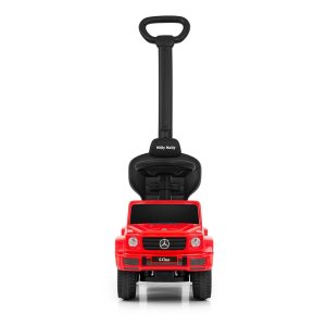 Dětské odrážedlo s vodící tyčí MERCEDES G350d je vyrobeno v licenci koncernu MERCEDES. Váš malý závodník či závodnice se v něm bude cítit jako v opravdovém džípu. Odrážedlo je vyrobeno s důrazem na každý detail a kvalitu použitých materiálů. Jeho vzhled upoutá pozornost nejen každého dítěte, ale i rodiče. Odrážedlo pomáhá rozvíjet motorické schopnosti dítěte a Váš malý závodník či závodnice si s ním užije spoustu zábavy a legrace. Autíčko má na tříramenném volantu tlačítka vydávající různé melodie, zvuk motoru nebo houkačku. Je určeno jak pro nejmenší děti, které už umí sedět, tak i pro děti, které se už naučily chodit. Odrážedlo má otočná přední kola, široké a komfortní sedadlo s úložným prostorem a pohodlnou a zároveň pevnou vodící tyč, kterou lze odrážedlo řídit. Vodící tyč, opěrky na ruce a podnožky lze sundat a tím dítě využije autíčko jako klasické odrážedlo. Baterie nejsou součástí balení (2x AA 1.5V).