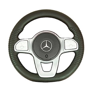 - Tříramenný volant s logem MERCEDES, vybavený klaksonem s veselými melodiemi a zvukem motoru