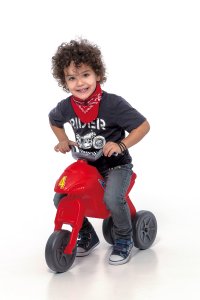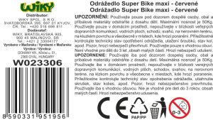 Odrážedlo Super Bike maxi. Červená barva. Rozměry - délka 60cm, šířka 28cm, výška 48cm. 3 kola. Max nosnost 50 Kg.