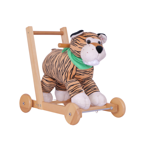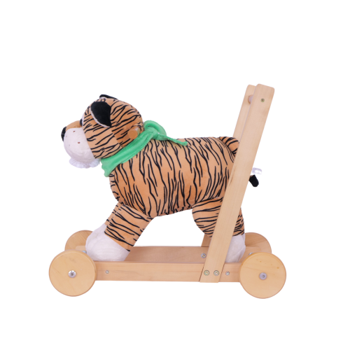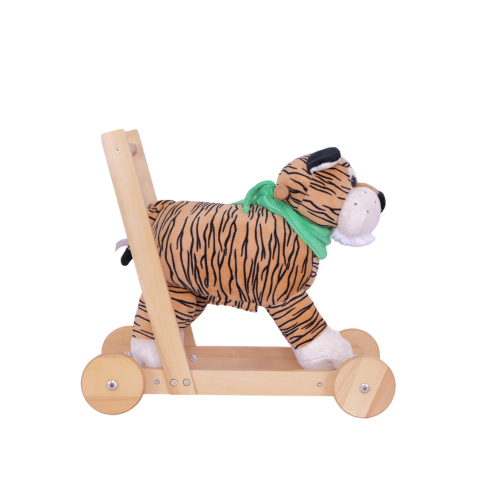 Usměvavého tygříka si zamiluje každé malé dítě od 12 měsíců. Tento všestranný pomocník slouží nejen jako odrážedlo, ale i jako stabilní chodítko pro první krůčky. A dokonce hraje příjemnou dětskou melodii! Je ideální pro hravé objevování světa doma i venku. Díky pevné konstrukci a odolným kolečkům nabízí bezpečný pohyb a podporuje rozvoj rovnováhy, koordinace i jistoty při chůzi. Měkké sedátko zajišťuje pohodlí, zatímco zaoblené tvary a plyšový povrch jsou příjemné na dotek. Veselý tygřík s milým výrazem podněcuje dětskou fantazii a přirozenou touhu po pohybu. Skvělá volba, která spojuje funkčnost, bezpečí a radost ze hry. Díky hravému designu, pestrým barvám a roztomilému obličeji se stane pěkným doplňkem dětského pokoje nebo herny. Testováno podle nejpřísnějších bezpečnostních norem EN 71.  Hlavní vlastnosti: odrážedlo a chodítko v jednomdřevěný rám s plyšovou výplnípřehrává příjemnou dětskou melodiipodporuje rozvoj koordinace pohybůdodáváno v rozloženém stavumontážní materiál včetně nářadí a návodu na sestavení je součástí balenínapájení 2x1,5 V AA baterie (nejsou součástí balení)nosnost 20 kgvhodné od 12 měsíců