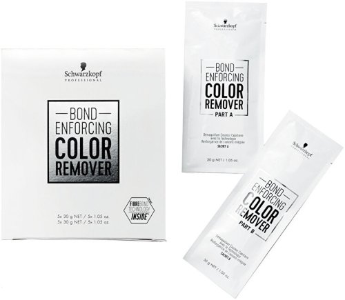 Schwarzkopf Bond Enforcing Color Remover zbaví vlasy nepatřičných pigmentů a připraví je na nové barvení. Vytváří na vlasech rovnoměrný světlejší základ a zjemňuje nechtěné tóny. Díky integrované technologii FibreBlond je odstranění barvy šetrné k vlasům a zároveň odstraňovač ochraňuje a zpevňuje vlasové vlákno a připraví ho na nové barvení.