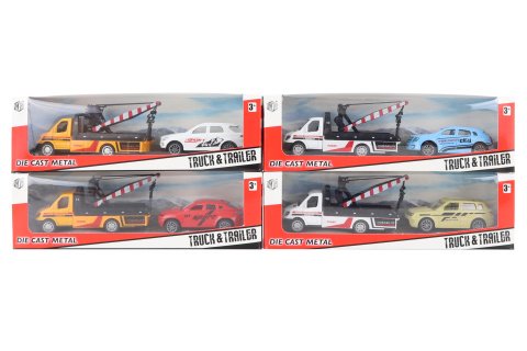 Kovový model odtahovky s osobním autem. Rozměr odtahovky cca 11,5 x 5 x 4 xm,rozměr auta cca 8 x 3 x 3,5 cm. Rozměr balení cca 23,5 x 7 x 6 cm. Věk 3+