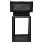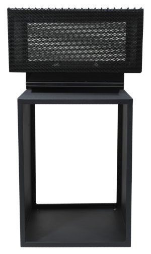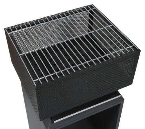 Čtvercová konstrukce ohniště se vyrábí z kvalitní oceli s vysokoteplotním černým nátěrem. Jeho strany jsou perforované a poskytnou vám unikátní pohled na hořící oheň. Dolní část využijete jako úložný prostor na dříví.