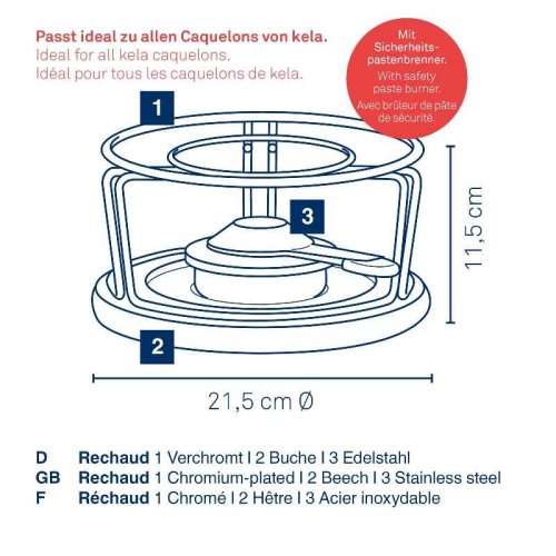 - materiál: bukové dřevo/ chromovaný kov/nerezová ocel 18/10- výška: 11,5 cm- průměr: 21,5 cm- sada obsahuje:- 1x hořák z nerezové oceli- 1x stojan- 1x dřevený tác- série: Natura- značka: KELA