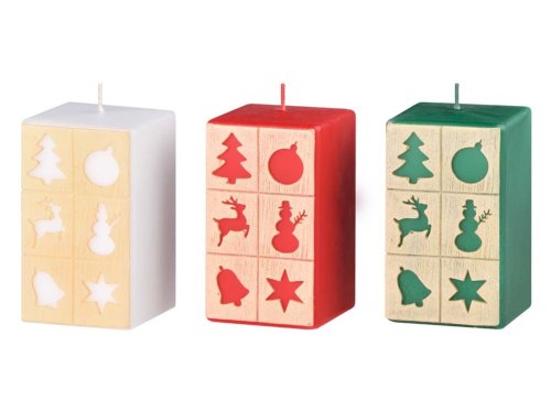 Tato sváteční svíčka ve tvaru hranolu o velikosti 60×110 mm je zdobena detailními okénkovými vánočními motivy, které po zapálení vytvářejí hřejivé a kouzelné světelné efekty. Díky mixu barevných variant lze snadno doplnit jak tradiční, tak moderní vánoční dekorace. Svíčka je vyrobena z kvalitního vosku, který zajišťuje stabilní a rovnoměrné hoření. Ideální jako samostatná dekorace, doplněk adventní výzdoby nebo součást dárkových balíčků. Přinese do domova klidnou, sváteční a útulnou atmosféru. Zboží je dodáváno v mixu. Doručované zboží je vybíráno náhodně a nelze vybrat konkrétní provedení.