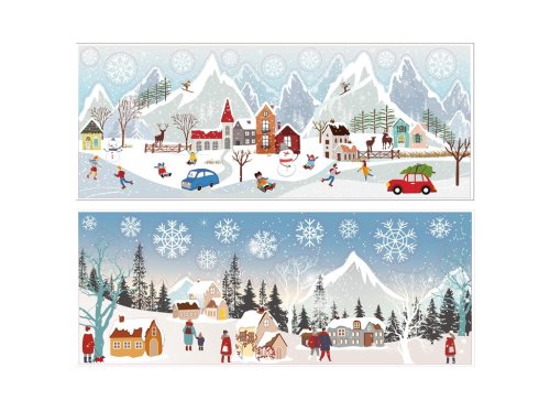 Okenní fólie o rozměru 210×600 mm s motivem barevné vesničky je ideální pro zimní a vánoční dekorace oken či skleněných ploch. Barevné provedení a detailní motivy dodávají fólii hravý a slavnostní vzhled.