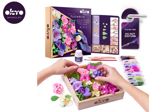 OKTO INSPIRATION Výtvarná modelovací sada DIY květiny v dřevěném rámu. Úroveň obtížnosti 4/5. Velikost rámu 21x21 cm. Samotvrdnoucí hmota (air clay). Obsah balení - dřevěný rám 210x210x50 mm, samotvrdnoucí hmota, tvarovací nástroj, štětec, obrázkový návod.