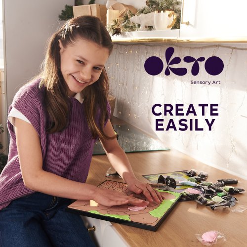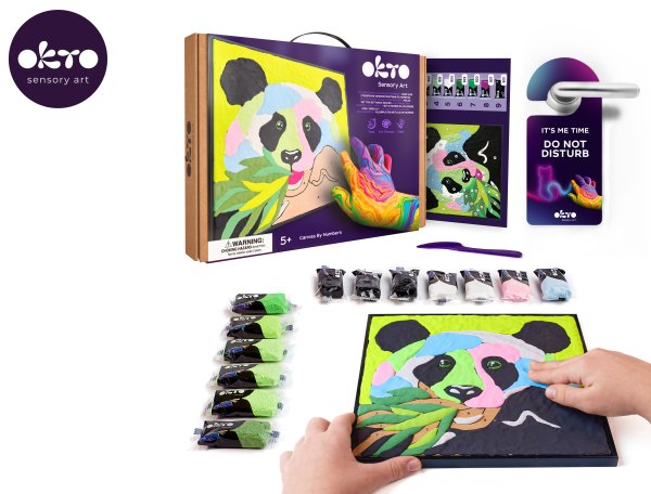 OKTO Panda výtvarná sada malování podle čísel. Velikost plátna 30x30 cm. Obsah - balení. Přírodní plátno, návod, dřevěný tvarovací nástroj, 40ks modelovací hmoty.