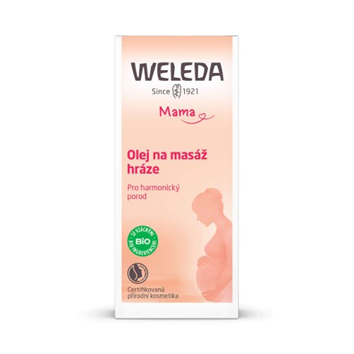 Pravidelné masáže Olejem na masáž hráze WELEDA zvyšují šanci na porod bez nástřihu. Kompozice olejů založená na nejjemnějším mandlovém oleji a oleji z pšeničných klíčků obsahuje velké množství vitamínu E, uvolňuje tkáň hráze a zvyšuje její elasticitu.