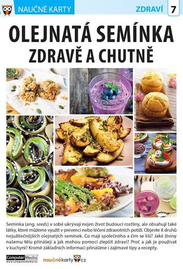 První leporelo ze série o užitečných semínkách je zaměřeno na semínka olejnatá. Dozvíte se, proč jíst dýňová, slunečnicová, sezamová, ale třeba také lněná, maková, hořčičná, konopná nebo chia semínka, a můžete se inspirovat zajímavými tipy i recepty na chutné využití semínek v kuchyni.